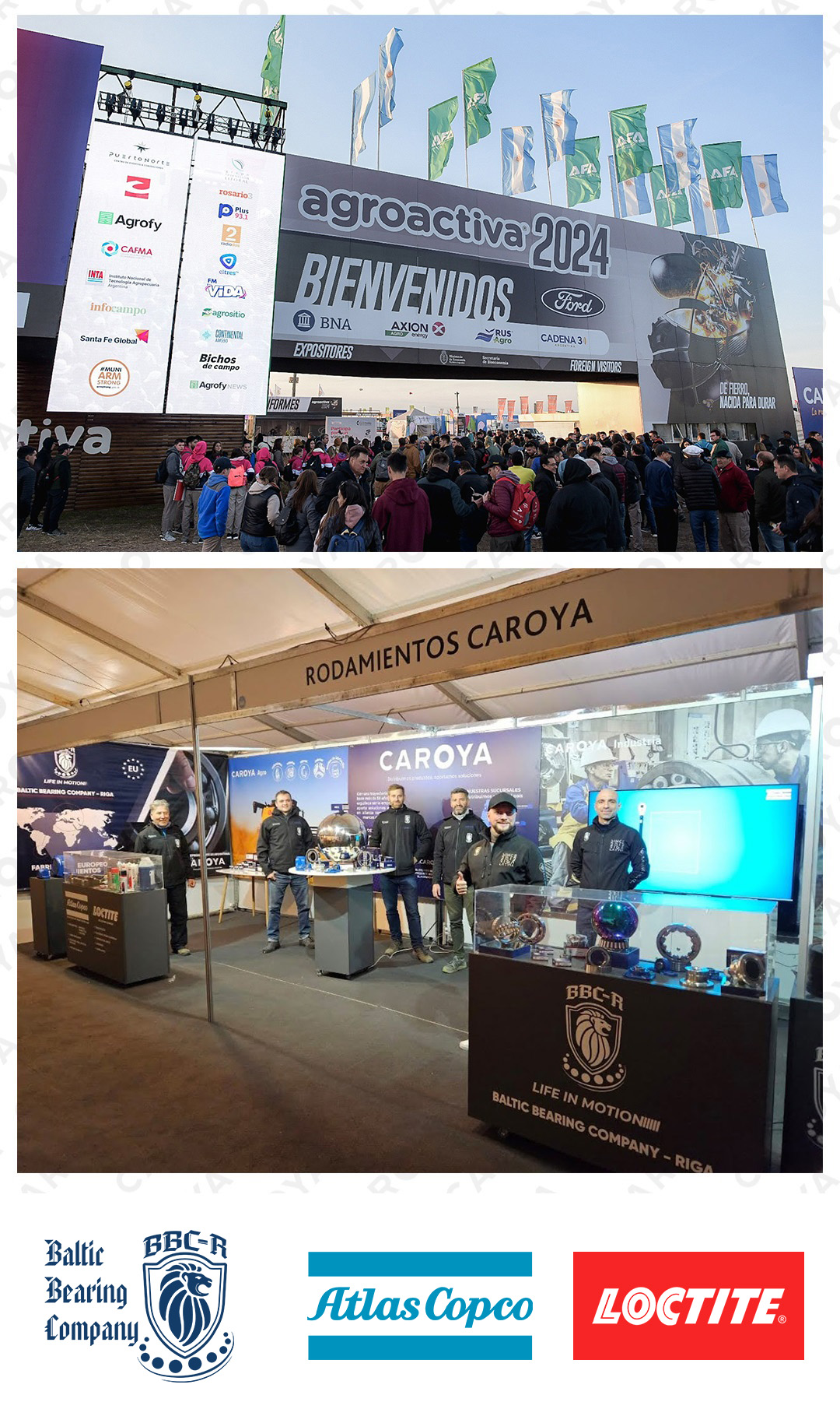 Armstrong, Santa Fe. Con gran satisfacción y enormes expectativas Caroya dijo presente en la exposición agroindustrial más importante de Argentina. Durante cuatro intensas jornadas, recibimos a miles de visitantes en nuestro stand, donde tuvimos la oportunidad de presentar la amplia gama de torquímetros y herramientas manuales de Atlas Copco, la línea de productos de mantenimiento y sellado de Loctite, pero principalmente, junto a integrantes del staff técnico de BBC-R, toda la línea de rodamientos y HUB’s especiales para el agro que la marca radicada en Letonia tiene para ofrecer al mercado nacional.