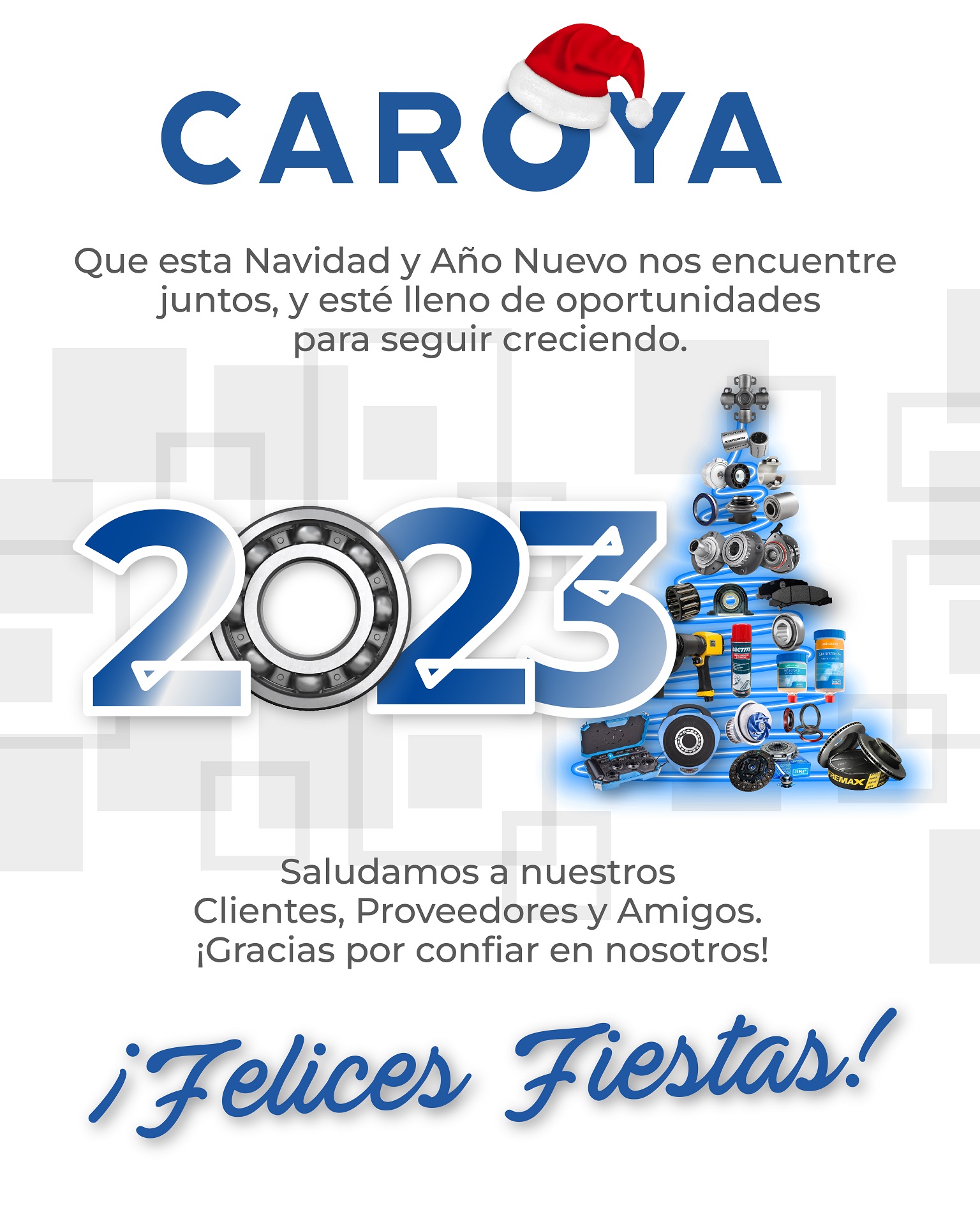 Todos los integrantes de la familia de Caroya les deseamos a nuestros, Clientes, Proveedores y Amigos una Feliz Navidad y un próspero Año Nuevo.